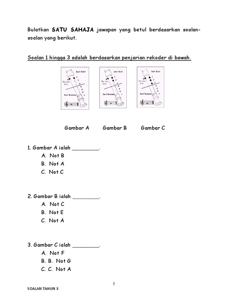 Soalan Dunia Muzik Tahun 3 Kssr Pdf